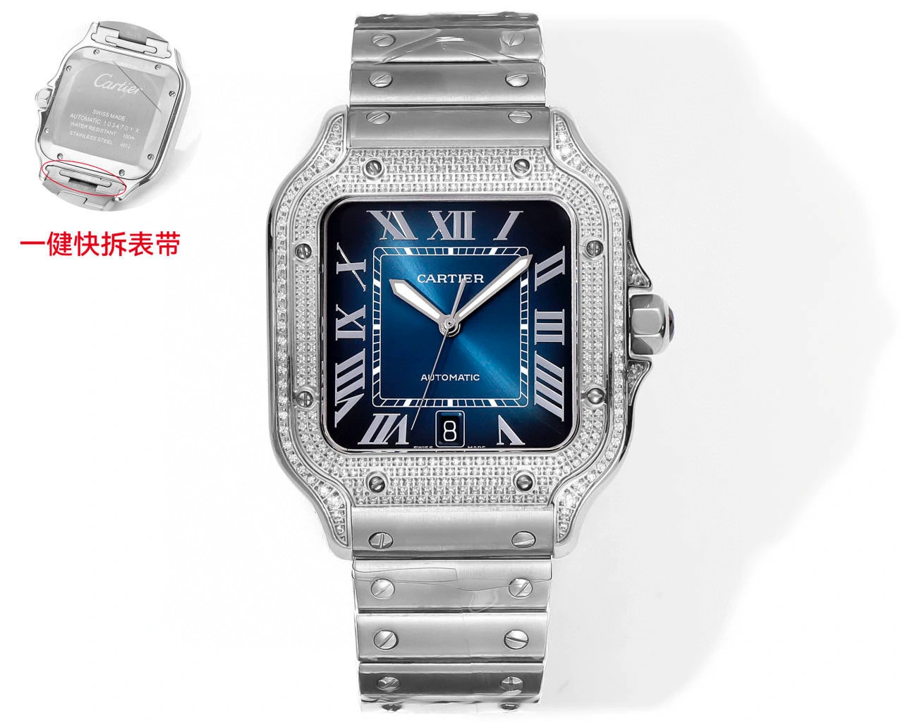 [Crown] Multi-faceted spinel sapphire 1:1 mold, truly interchangeable with original accessories. Equipped with Cartier's two practical inventions "SmartLink" bracelet adjustment device and "QuickSwitch" strap quick replacement device! [Case diameter: 39.8mm, thickness: 9.08mm]