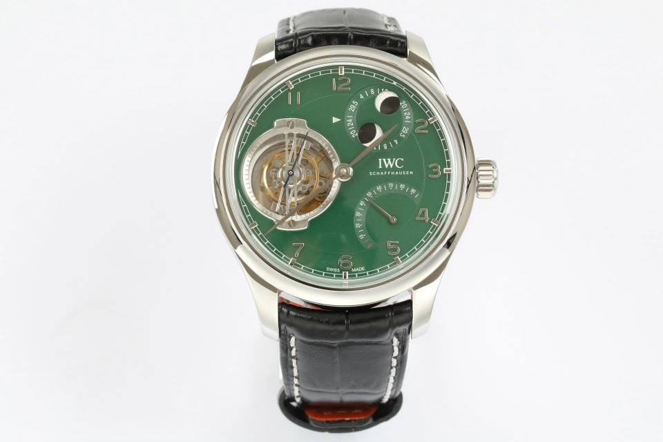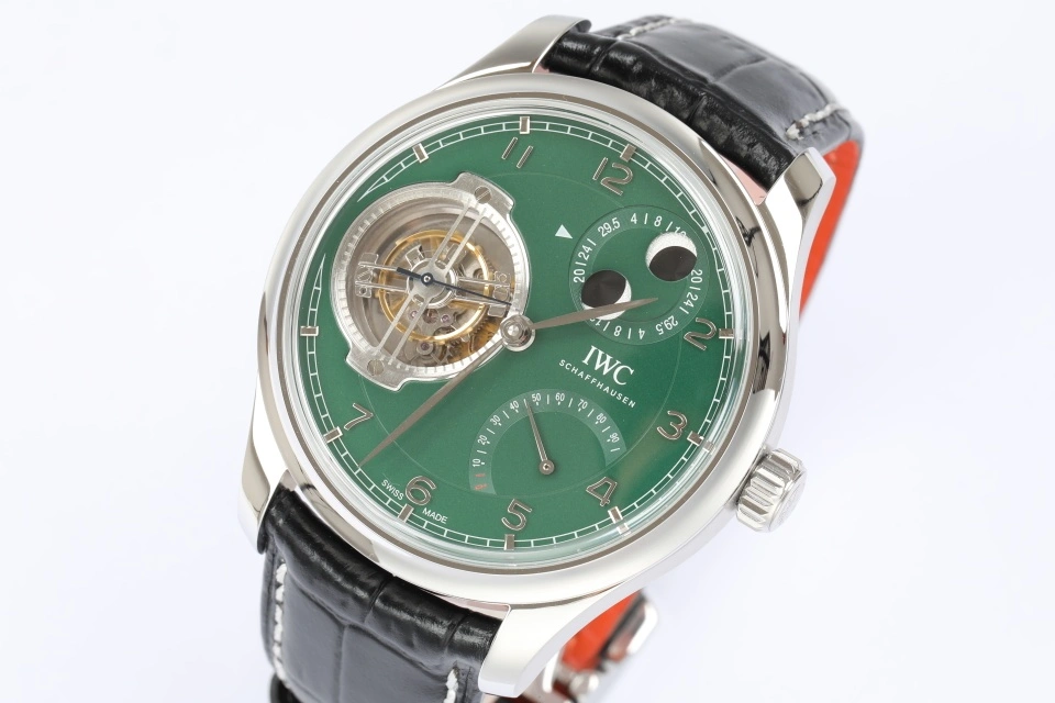 Strap: Made of Italian black cowhide crocodile pattern strap, hand-stitched, detailed, with IWC original folding clasp, the buckle surface font is clear, and the details of the original are restored.
