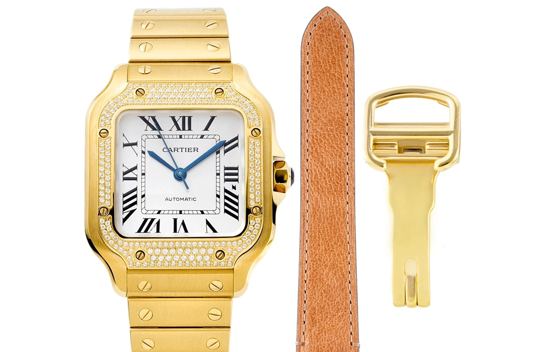 Cartier women's SANTOS Half Diamond 35.1MM*8.83MM Comes with quick-detachable leather strap