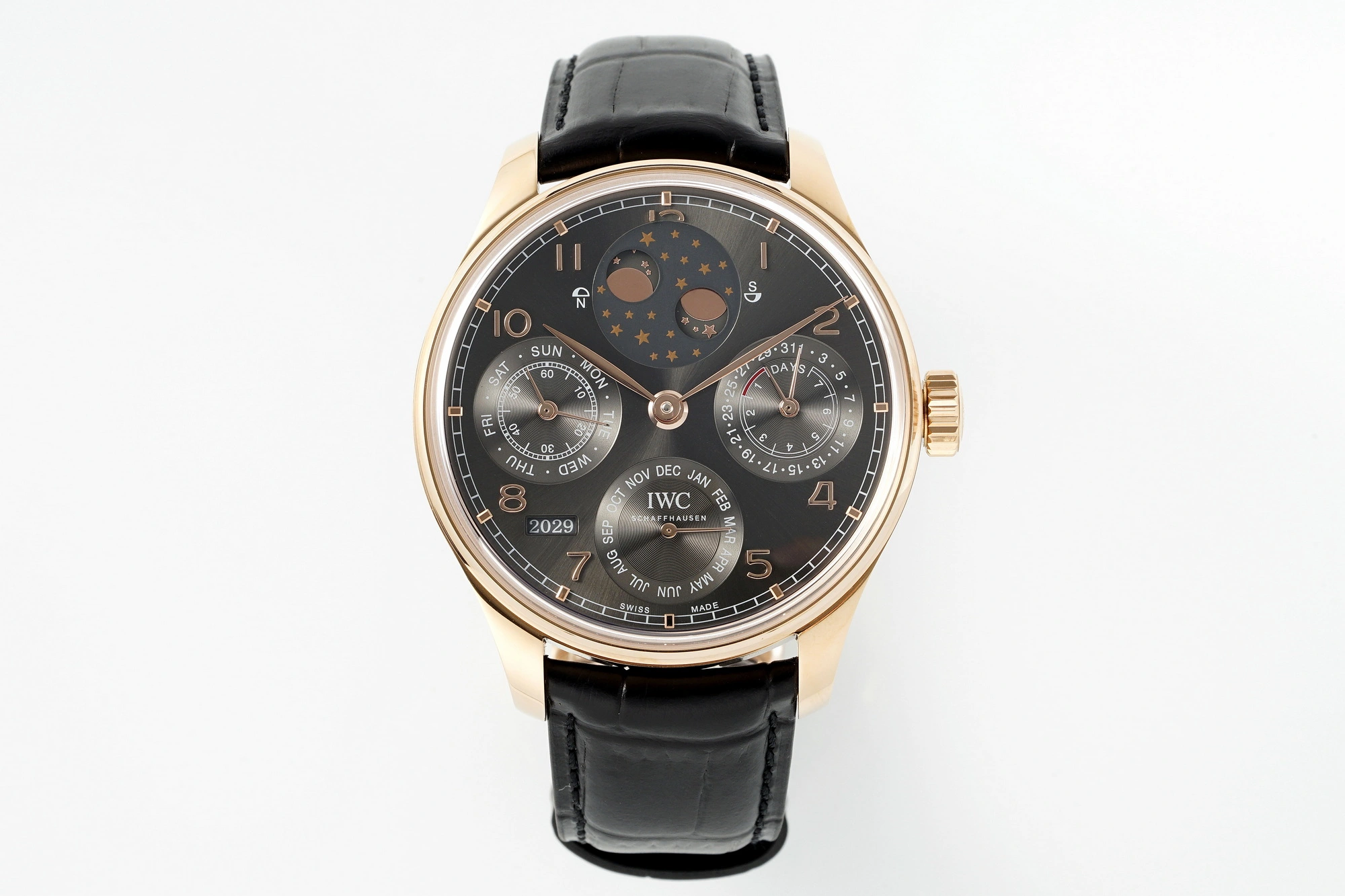 [Function introduction] Sun, moon and stars at 12 o'clock, independent small second hand and day hand display at 9 o'clock, month hand at 6 o'clock, and year display at 7 o'clock. The year jumps every 12 months. At 3 o'clock, there is the most classic power display hand and date display. Each needle is real and can be used to distinguish the two needles of small factories on the market from being glued together. [Fine workmanship] The shell adopts the same three-piece structure as the original, with brushed wire in the middle, polished upper and lower shells, and the mirror adopts high-cost pot-lid sapphire to enhance its texture. [Movement performance] The size is 42.2mmX14.9mm, basic The basic movement uses the Portuguese VII basic movement, which is efficient and stable, with a power time of more than 72 hours. A complex perpetual calendar module is installed, and all the original functions are synchronized to achieve synchronization through the crown adjustment. [Quality Control QC] Since the perpetual calendar module is very complex, the time will be adjusted before shipment. Customers can directly wind it up and wear it after receiving it. ⚠️Do not adjust it easily. When it really needs to be adjusted, first adjust the time to 8 o'clock in the afternoon and then adjust other functions. When debugging, first manually align the week, pull out one section and turn it up to adjust the month (12 months linked to the year), and turn it down about three times to start adjusting the calendar