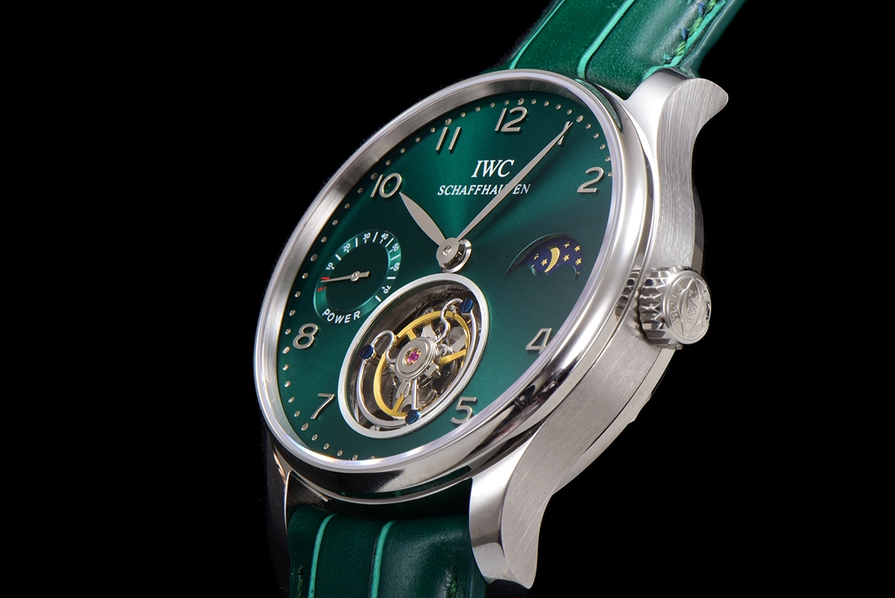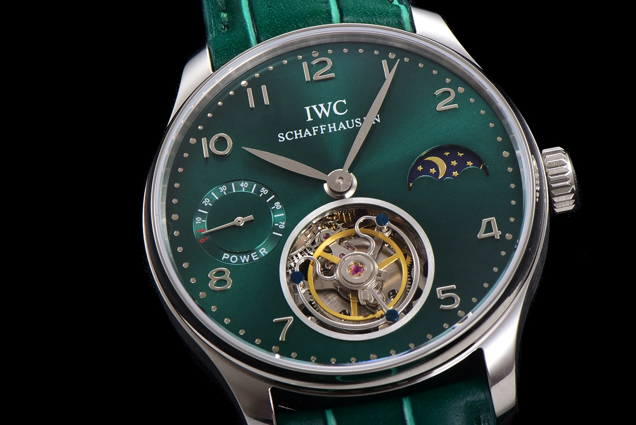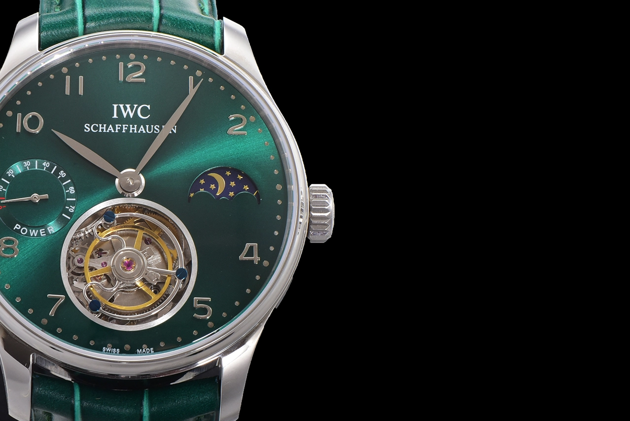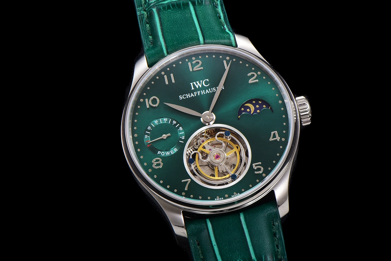 IWC Tourbillon  Portuguese Power Sun, Moon and Star Series True Flywheel Equipped with 72 hours of power display 24 hours of sun, moon and stars Top manual true flywheel movement Sapphire crystal glass Diameter 42mm Thickness 12.5mm