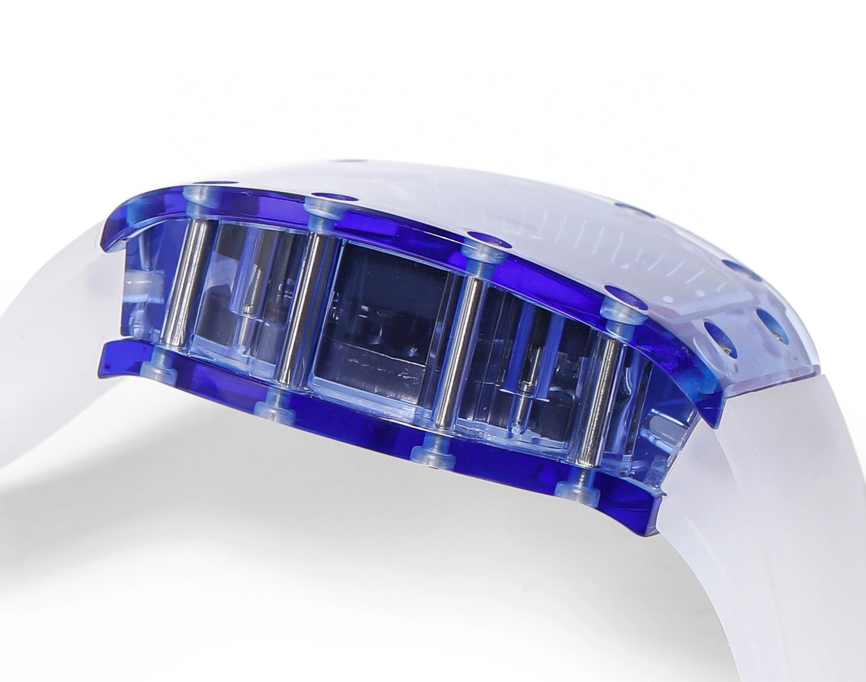 The RM052 Tourbillon watch is based on the million-level authentic Richard Miller. It features a sapphire crystal combined with a fully transparent case, a Swiss standard custom-made tourbillon movement, and a case lock structure that highly restores the authentic level. The imported rubber strap is designed based on the authentic Richard Miller watch.