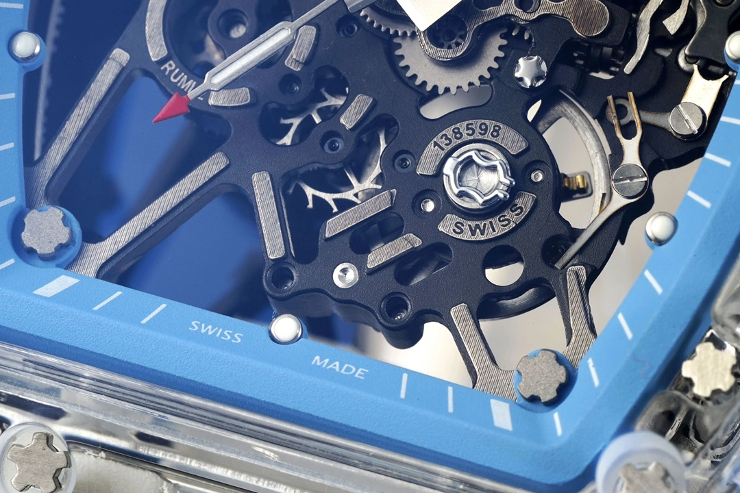 Movement: RMUL3 integrated movement, moving real balance spring, movement surface white gem shock absorber, movement bottom white gem shock absorber and adjuster outer pile, movement gear is real, 12 o'clock position carbon black gear, say goodbye to fake splint movement