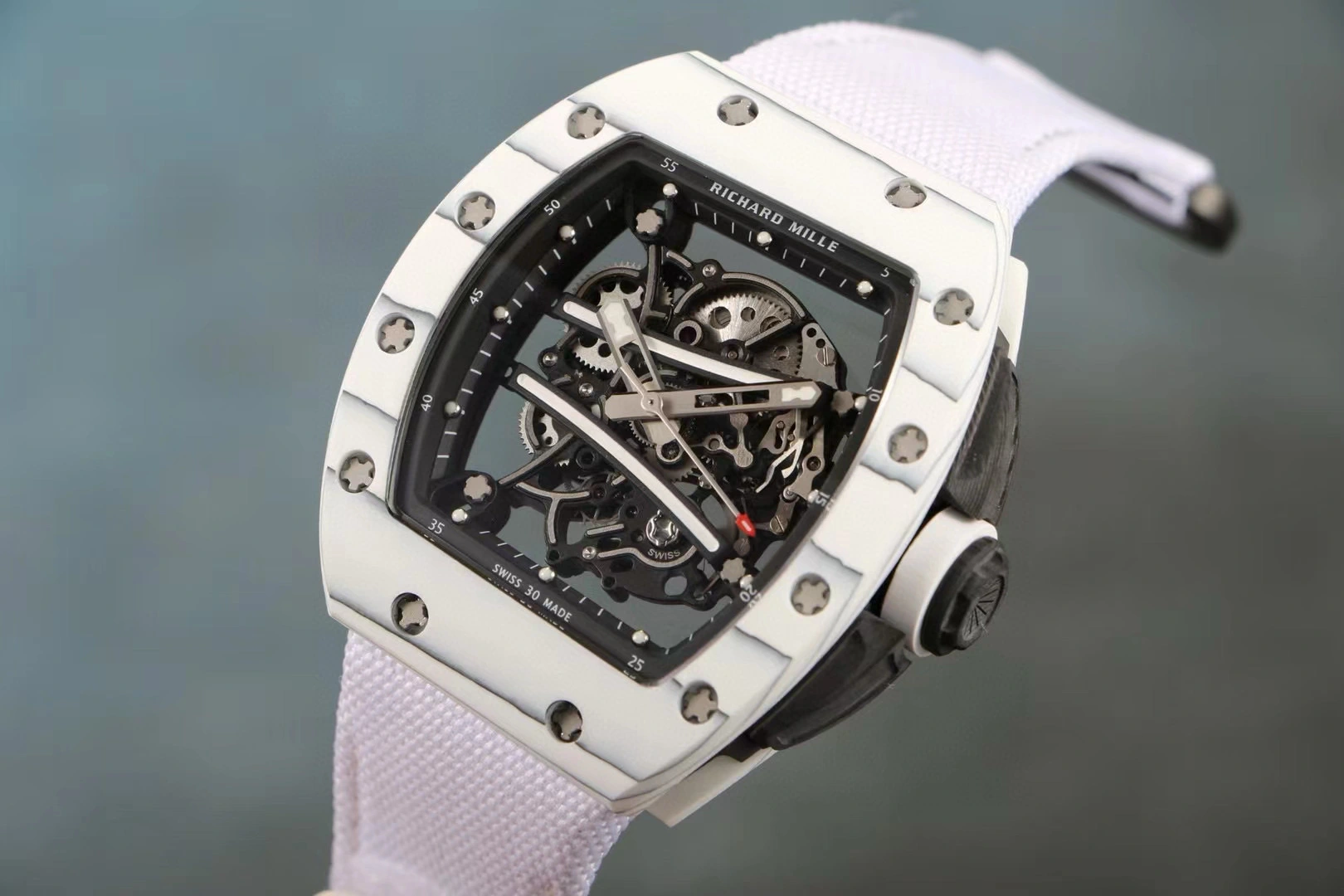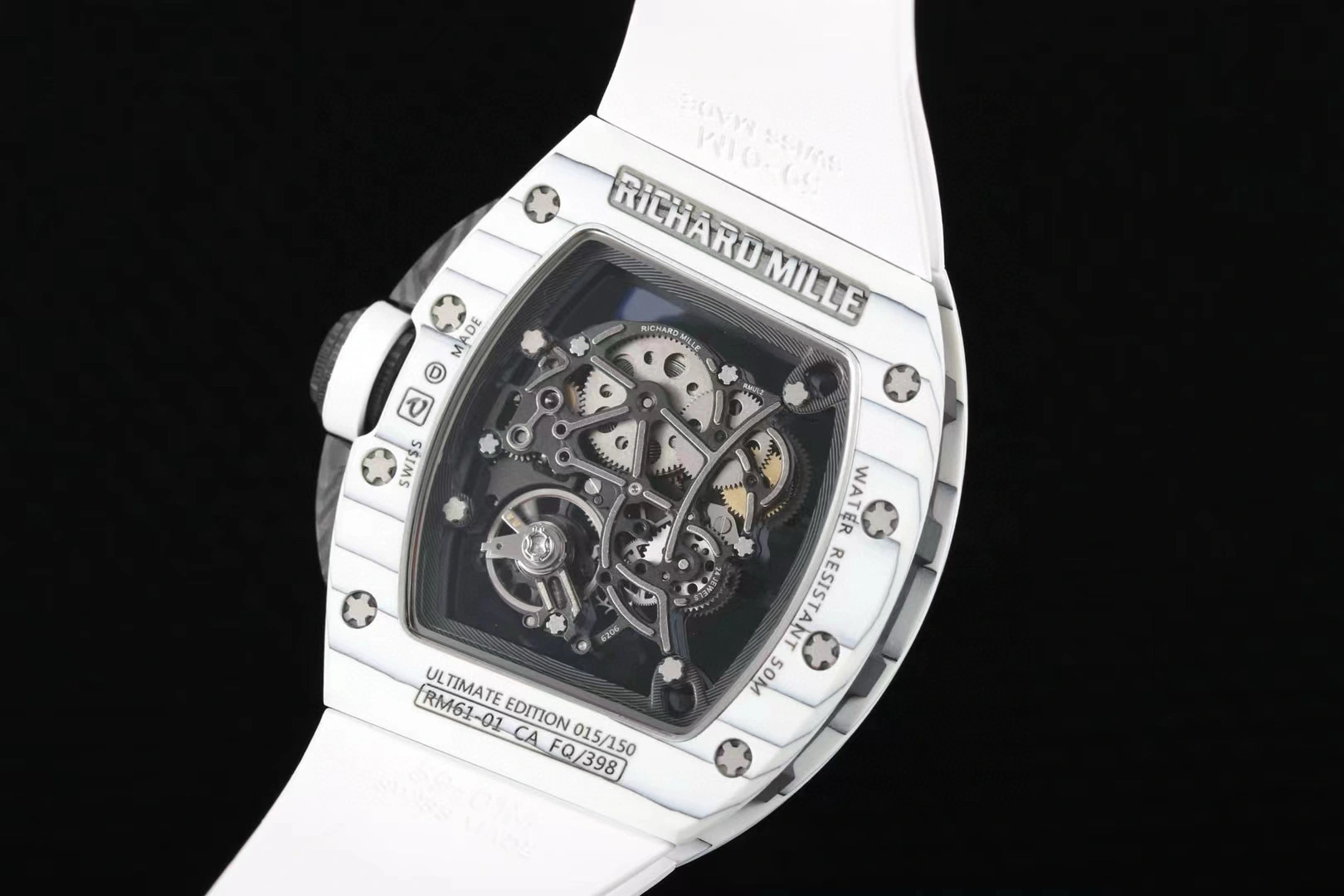 Integrated RMUL2 movement, slim case design RICHARDMILLE Richard Mille RM 61-01 Yohan Blake Ultimate Edition watch. Let's take a brief look at the origin of this watch. The first RM 61-01 Yohan Blake watch was born in 2014. Yohan Blake is a Jamaican sprinter who occupies a place in the celebrity list of track and field stars. If this is the first time you know this watch, you can probably understand its inspiration-a high-end sports watch developed specifically for sports. This RM 61-01 Yohan Blake Ultimate Edition watch was launched by Richard Mille in 2020, and it is also the finale of this style and its unique series. The watch case is a highlight. First of all, it is an asymmetrical shape. The case is deliberately extended on one side from 2 o'clock to 5 o'clock, forming a "narrow on the left and wide on the right" shape. The main purpose of this design is not for curiosity, but to avoid friction between the crown and the sprinter's wrist. Another highlight of the case is the use of new materials. The bezel and bottom cover are made of quartz carbon fiber (Quartz TPT®) and carbon fiber (Carbon TPT®). The production of this composite material can be said to have gone through many stages: the first step is to soak extremely thin silica (quartz carbon fiber is separated from it) in white resin, then insert carbon fiber layers into it and stack them by machine. Then, after the fiber layers are heated to 120 degrees Celsius under high pressure, they are sent to Richard Mille's factory for processing. The processing process will form a random texture on this composite material, so each watch is unique. Finally, it is assembled with grade 5 titanium spline screws and stainless steel washers to ensure a water resistance of 50 meters. The crown is made of carbon fiber (Carbon TPT®) and has an O-ring as a protective device to ensure that the crown will not be accidentally touched during movement. Anti-glare sapphire crystal glass. The RM61-01 "Final Edition" watch is equipped with the RMUL2 hollow manual winding movement, which provides about 55 hours of power.